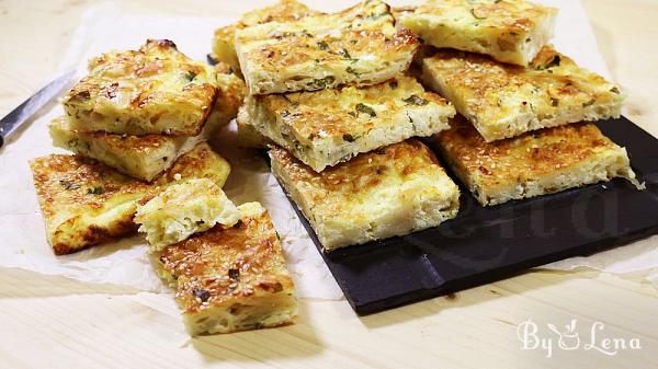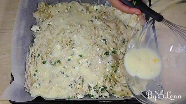 This Greek pie is called 'Patsavouropita' and translates to 'old rag pie'. There are two versions, the salty and the sweet one and I've already tested both. Today I'm showing you the salty cheese pie. It's really simple and quick, brilliant even, with a surprisingly tasty outcome. My husband witnessed the whole process but he still found it hard to believe how good it was with minimal effort. It's perfect as an appetiser, snack, for picnic or a trip, anything you need, really.