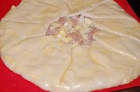 Add the filling, leaving about 5-7 cm of dough free around the edges.