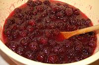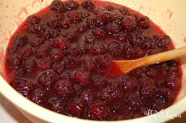 Add the sugar to the cherries, mix well, and let them release their juice for several hours.