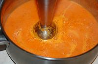 For a smoother soup, blanch the tomatoes in boiling water for a few seconds and peel them before adding.