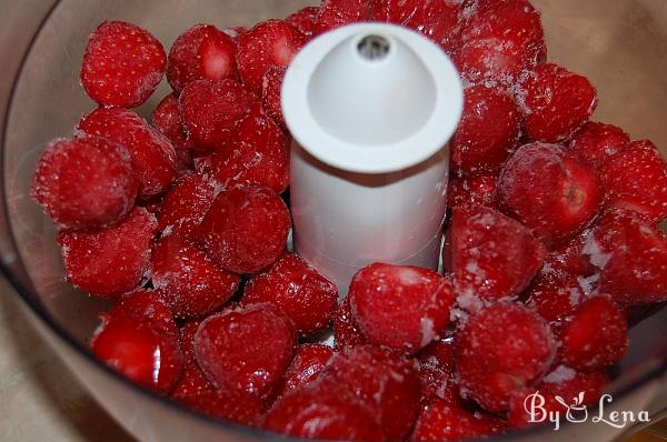I tested this ice cream recipe a long time ago when I attended a cooking workshop. It was winter at the time and I had frozen berries. Everyone liked it and I put the recipe on the waiting list. Now its time has come. This is the strawberry ice cream version, but you can use any fruit you like.