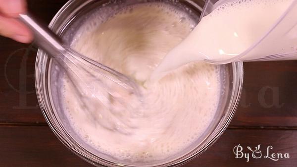 Then pour this yeast and milk mixture over the scalded and cooled flour.