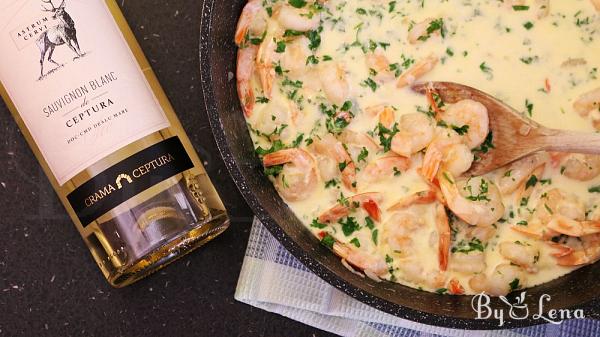 This creamy shrimp can be served as such, with some fresh bread, or with pasta, rice, couscous etc.