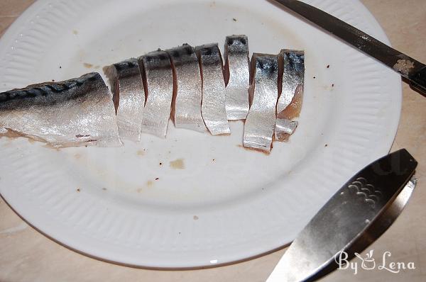 For us, pickled mackerel (or salted mackerel) is indispensable in the cold season and especially during the winter holidays. It's wonderful served simply as an appetizer, with olives and some onion slices beside. If you also added some potatoes baked in the oven, it would be pure madness... I showed you last year a good method to pickle mackerel in brine and now I discovered another quick and easy way to pickle fish.