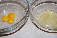 Add the beaten egg whites, little at a time, stir carefully with a spatula.