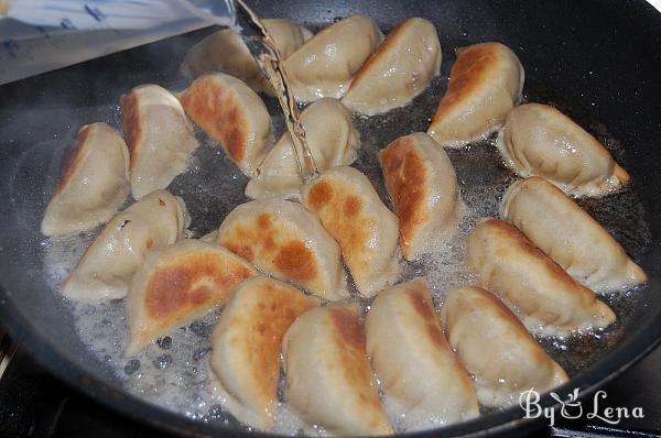 Remove the lid, transfer dumplings on a platter and place new dumplings in the pan to fry.