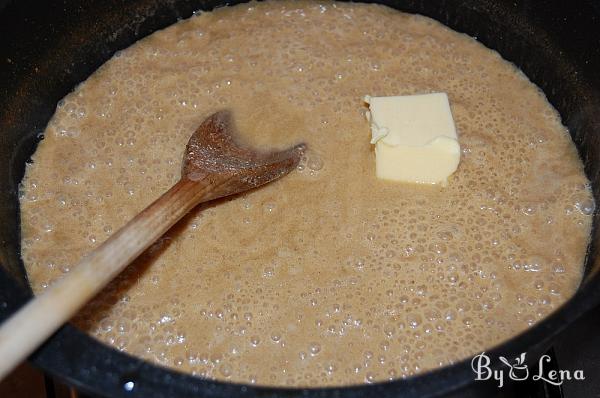 When you have the desired consistency, add 30g of butter to the sauce and season with salt, to taste. Turn off the heat.