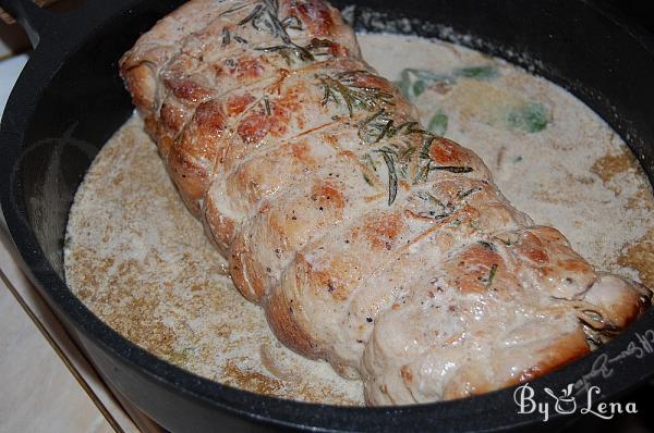 Serve the hot pork slices with sauce on top, in addition to your favorite garnish or a salad.