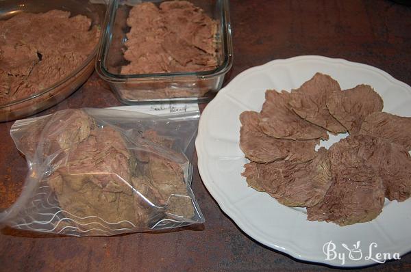 I also like to place the sliced meat in glass boxes with lids. After I finish cutting the whole piece, I freeze the remainings and use them when I make a beef (boeuf) salad.