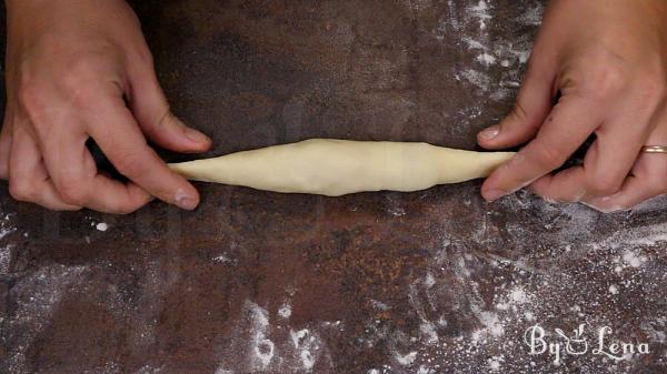 Shape like this all the crescents and fill the baking sheet. Let rise for 30 minutes at room temperature.