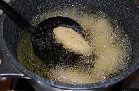 Heat about 1 liter of oil in a small, deep saucepan. I prefer to use peanut oil for this, but the classic sunflower oil also works.
