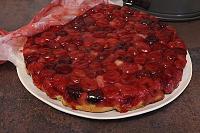 This exceptional cherry cake is delicious, a fact which was confirmed by all the people in our family who tasted it, including those who don't really like desserts. The layer of jellied cherries is wonderful, and the cake is flavored and filled with cherry juice.