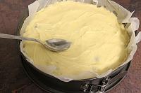 Pour the batter over the cherries. Spread evenly with a spoon over the entire surface.