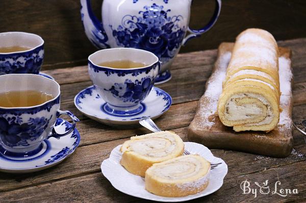 Roll it tightly, cover with a dry towel, the baking paper it was originally baked in, or foil, and refrigerate for 4-5 hours or overnight.