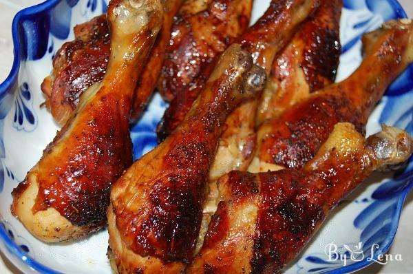 At times, remove the pan from the oven and, using a spoon or a brush, coat the chicken with the sauce from the pan - in order to get a proper tasty caramel crust.