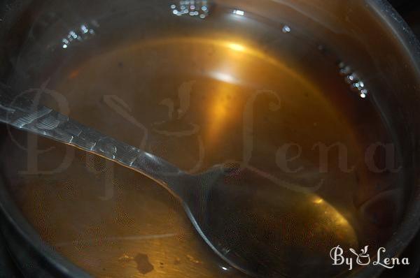 Here the caramel is more dense - with half a cup of water - the colour is darker and more intense.