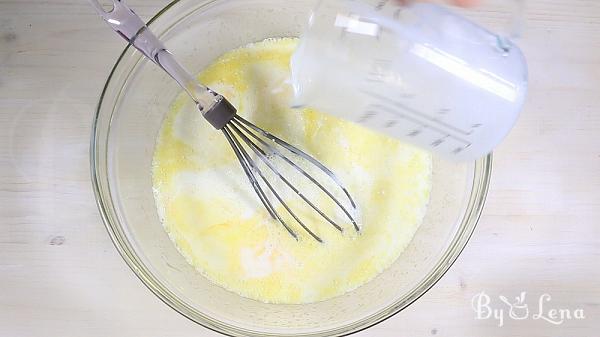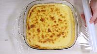 Place the dish in a large oven tray, large enough to fit, and fill the tray with water. This step is very important, the mixture will bake evenly and will have a soft and not spongy texture.
