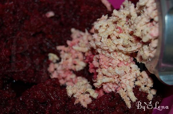 Once prepared, process the beetroot and horseradish through a meat grinder.