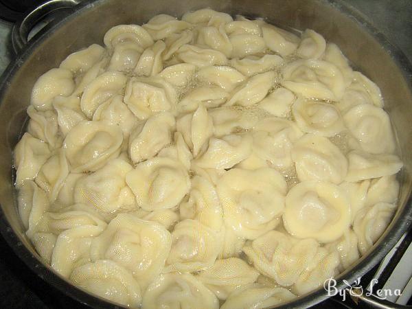 After removing the first batch of pelmeni, repeat with the next one (if they didn't fit all in the first round) - bring the water to the boil and drop the dumplings into water.