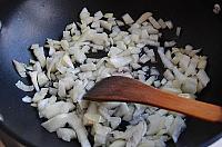 Peel an onion, wash it, cut it into small pieces and put it in a pan with a little oil.