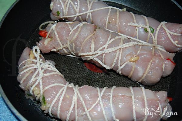 Each roll is tied well with cotton twine, or fastened with toothpicks (but I recommend cotton twine - the roll is better held).