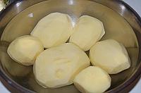 Cut the potatoes into larger cubes and place in the pan. Mix well, so each potato and be greased with oil.