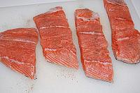 Dry the salmon fillets with paper towels and season with salt and pepper.