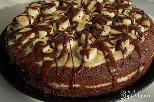 With a spoon chaotically pour chocolate over bananas. Then put the cake in the fridge for a few hours.