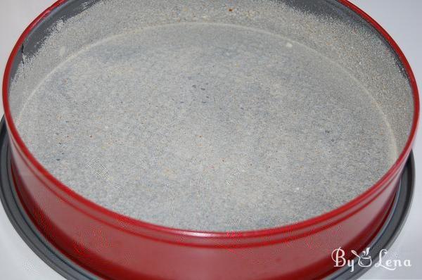 Grease a baking tray with butter (I used a 28 cm round one with removable edges) and sprinkle breadcrumbs on the bottom and walls of the tray.