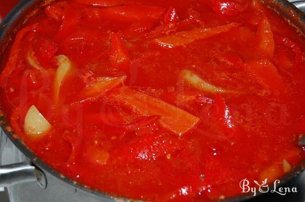 And I will continue this week with some of my basic canning recipes. One of them, the newest in the collection, is this recipe for peppers in tomato sauce. From what I found out on the internet, from the origins of the recipe, it is a Hungarian food - which can be made as such, or can be preserved for the winter.