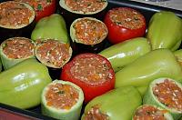 In fact, I was starting to make stuffed cabbage, but because I had the time and the mood, and I was in that good mood to sit in the kitchen, along the way I kept changing my plans and a super delicious and special food came out. At first I said to bake them in the pan, without water, then I wanted to fill not only peppers, but also tomatoes, zucchini, eggplant - and as a last step I seasoned them with a delicious tomato sauce, plus garlic and parsley.