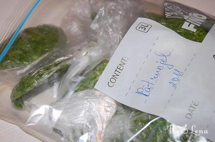 And the last step - put all these portioned bags in a bigger and thicker freezer bag - don't forget to write what kind of greenery you put in the year.