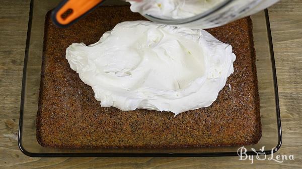 This poppy cake is actually called Revani Poppy Cake, meaning a Greek dessert with semolina. The Arab version is called Basbousa. I highly recommend it. The cake is very tender, fluffy, soft and wonderfully matches the whipped cream. A big plus is that it's fast, without much effort and fuss in the kitchen, yet very impressive - both visually and in taste! I was so excited about Basbousa that I had no fear when I tried this poppy cake. It was one of the few recipes I made for the first time and came out without any problems.