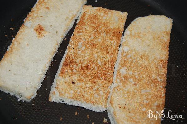 Bread slices are browned on an oil-free pan on both sides.