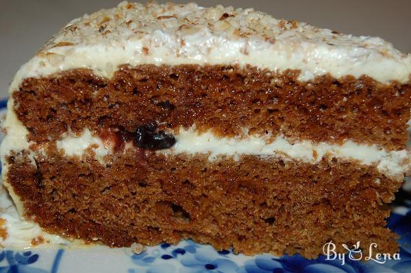 Then put the second sheet and the rest of the cream. Garnish according to preference - I simply prefer nuts or cherries.