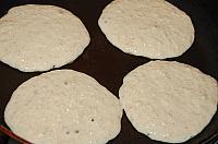 Notice that after 2-3 minutes air bubbles start to come out and small holes are made in the pancakes.